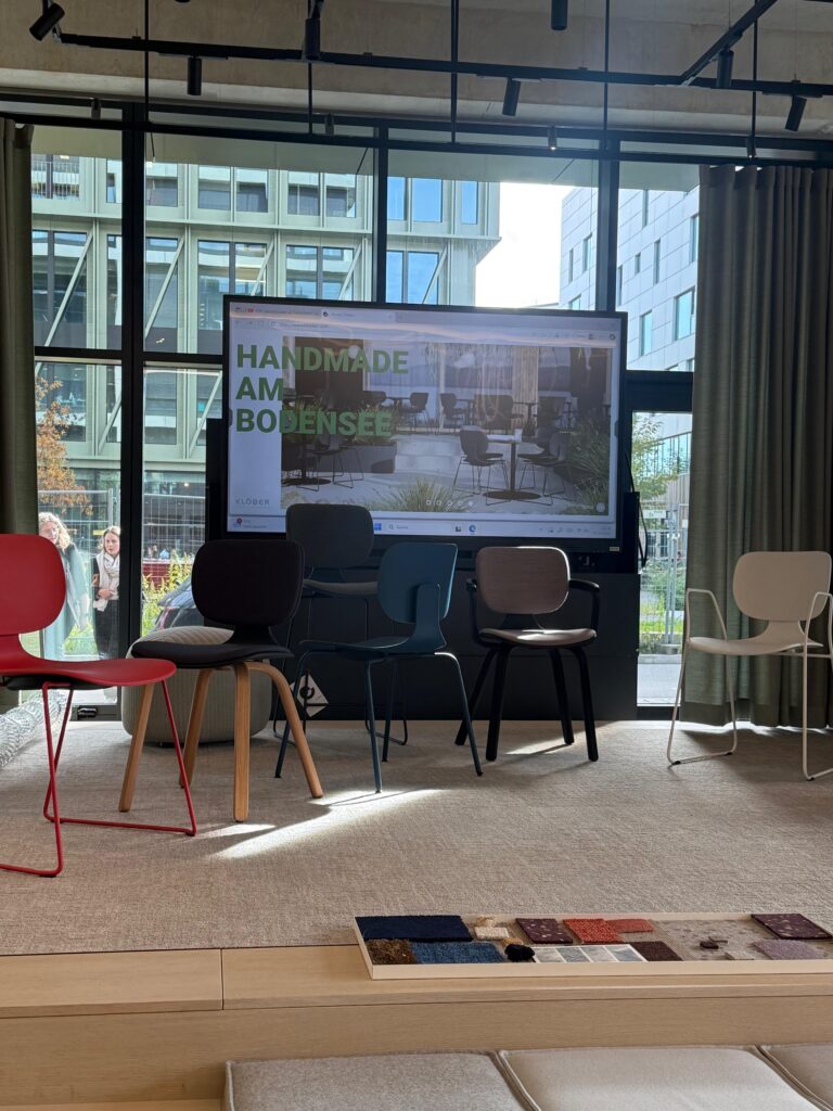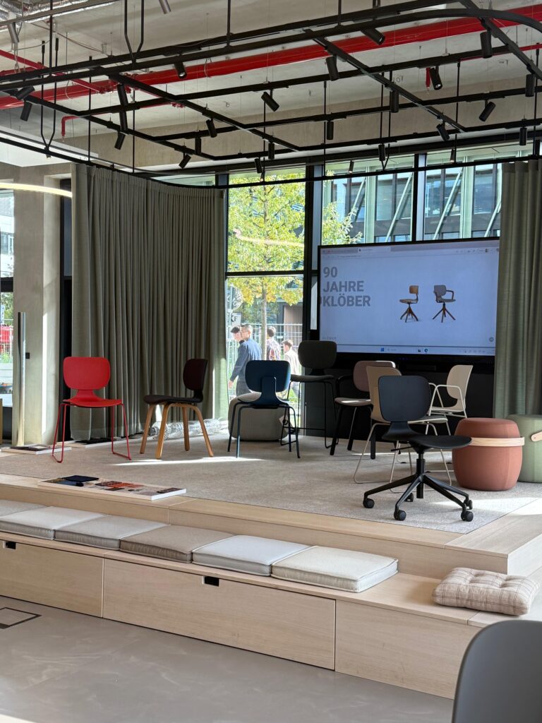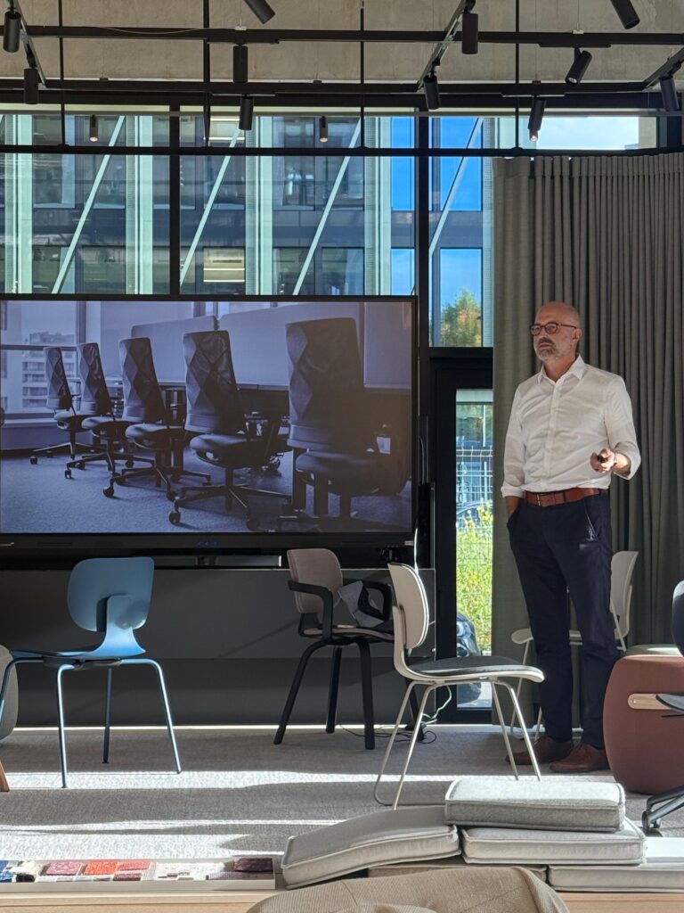 Er zeigte, wie eng bei Klöber Design, Ergonomie und Farbe miteinander verbunden sind – und wie jedes Produkt so gestaltet wird, dass es sich harmonisch in unterschiedliche Raumkonzepte einfügt.